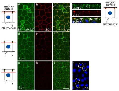 Cell-cycle dependent localization of MELK and its new partner RACK1 in epithelial versus mesenchyme-like cells in Xenopus embryo. , Chartrain I, Le Page Y, Hatte G, Körner R, Kubiak JZ , Tassan JP ., Biol Open. August 21, 2013; 2 (10): 1037-48.