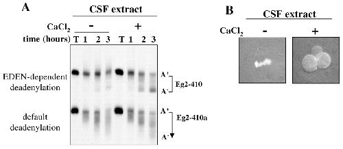 Regulation of EDEN-dependent deadenylation of Aurora A/ Eg2-derived mRNA via phosphorylation and dephosphorylation in Xenopus laevis egg extracts. , Detivaud L, Pascreau G, Karaiskou A, Osborne HB , Kubiak JZ ., J Cell Sci. July 1, 2003; 116 (Pt 13): 2697-705.