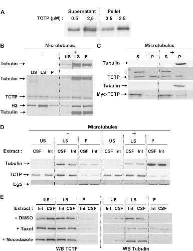 Association of TCTP with centrosome and microtubules. , Jaglarz MK, Bazile F, Laskowska K, Polanski Z, Chesnel F, Borsuk E, Kloc M , Kubiak JZ ., Biochem Res Int. January 1, 2012; 2012 541906.