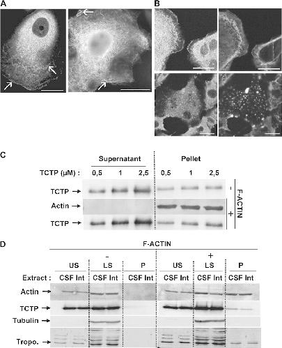Complex relationship between TCTP, microtubules and actin microfilaments regulates cell shape in normal and cancer cells. , Bazile F, Pascal A, Arnal I, Le Clainche C, Chesnel F, Kubiak JZ ., Carcinogenesis. April 1, 2009; 30 (4): 555-65.