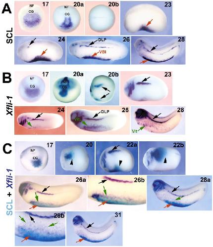 VEGFA-dependent and -independent pathways synergise to drive Scl expression and initiate programming of the blood stem cell lineage in Xenopus. , Ciau-Uitz A , Pinheiro P , Kirmizitas A, Zuo J, Patient R ., Development. June 1, 2013; 140 (12): 2632-42.