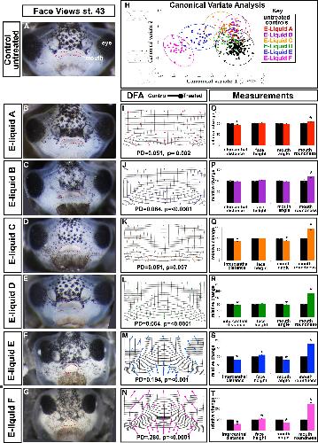 E-cigarette aerosol exposure can cause craniofacial defects in Xenopus laevis embryos and mammalian neural crest cells. , Kennedy AE , Kandalam S, Olivares-Navarrete R, Dickinson AJG ., PLoS One. September 8, 2017; 12 (9): e0185729.