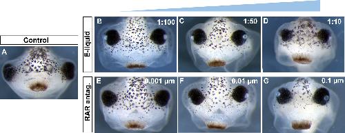 E-liquids and vanillin flavoring disrupts retinoic acid signaling and causes craniofacial defects in Xenopus embryos. , Dickinson AJG, Turner SD, Wahl S , Kennedy AE , Wyatt BH, Howton DA., Dev Biol. January 1, 2022; 481 14-29.