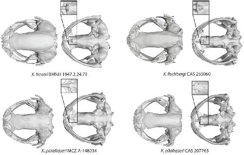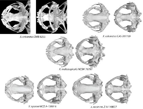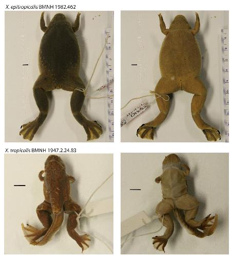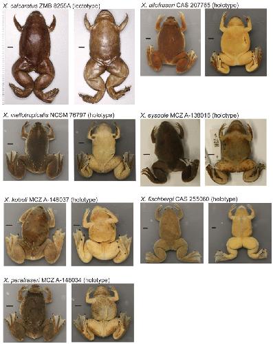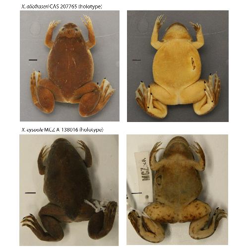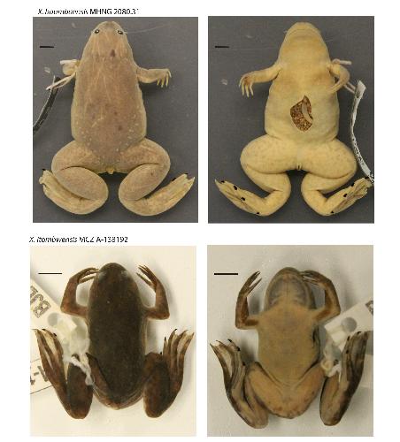 Genetics, Morphology, Advertisement Calls, and Historical Records Distinguish Six New Polyploid Species of African Clawed Frog (Xenopus, Pipidae) from West and Central Africa. , Evans BJ , Carter TF, Greenbaum E, Gvoždík V, Kelley DB , McLaughlin PJ, Pauwels OS, Portik DM, Stanley EL, Tinsley RC, Tobias ML, Blackburn DC ., PLoS One. December 16, 2015; 10 (12): e0142823.