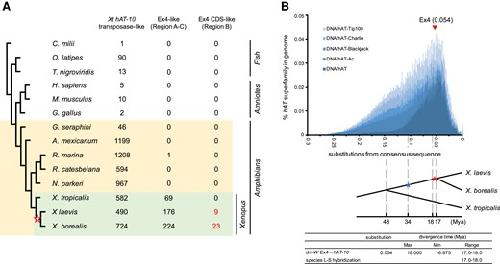 Genomic dynamics of transposable elements in the western clawed frog (Silurana tropicalis). , Shen JJ, Dushoff J, Bewick AJ, Chain FJ , Evans BJ ., Genome Biol Evol. January 1, 2013; 5 (5): 998-1009.