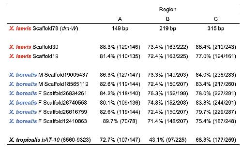 Functional dissection and assembly of a small, newly evolved, W chromosome-specific genomic region of the African clawed frog Xenopus laevis. , Cauret CMS, Jordan DC, Kukoly LM, Burton SR, Anele EU, Kwiecien JM, Gansauge MT, Senthillmohan S, Greenbaum E, Meyer M, Horb ME , Evans BJ ., PLoS Genet. October 1, 2023; 19 (10): e1010990.