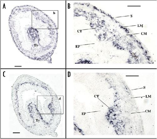 Expression profiling of intestinal tissues implicates tissue-specific genes and pathways essential for thyroid hormone-induced adult stem cell development. , Sun G , Heimeier RA, Fu L, Hasebe T , Das B, Ishizuya-Oka A , Shi YB ., Endocrinology. November 1, 2013; 154 (11): 4396-407.