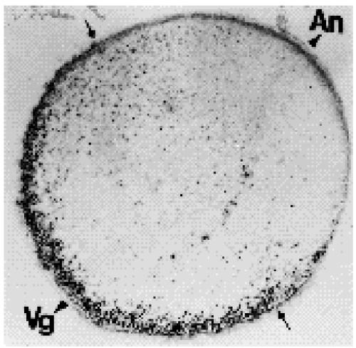 A mRNA localized to the vegetal cortex of Xenopus oocytes encodes a protein with a nanos-like zinc finger domain., Mosquera L, Forristall C, Zhou Y, King ML., Development. January 1, 1993; 117 (1): 377-86. |
