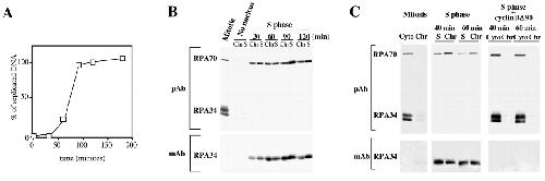 Role of replication protein A as sensor in activation of the S-phase checkpoint in Xenopus egg extracts., Recolin B, Van der Laan S, Maiorano D., Nucleic Acids Res. April 1, 2012; 40 (8): 3431-42. |