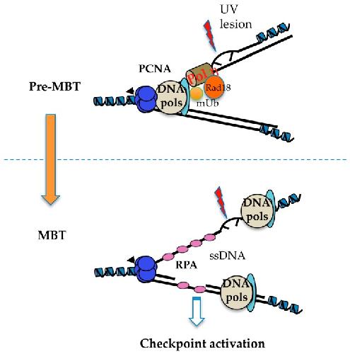 RAD18 Is a Maternal Limiting Factor Silencing the UV-Dependent DNA Damage Checkpoint in Xenopus Embryos., Kermi C, Prieto S, van der Laan S, Tsanov N, Recolin B, Uro-Coste E, Delisle MB, Maiorano D., Dev Cell. August 10, 2015; 34 (3): 364-72. |