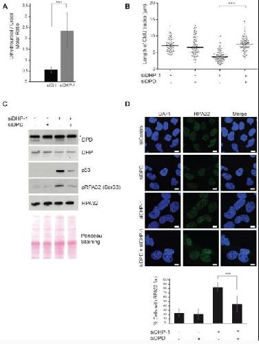 Dihydropyrimidinase protects from DNA replication stress caused by cytotoxic metabolites., Basbous J, Aze A, Chaloin L, Lebdy R, Hodroj D, Ribeyre C, Larroque M, Shepard C, Kim B, Pruvost A, Moreaux J, Maiorano D, Mechali M, Constantinou A., Nucleic Acids Res. February 28, 2020; 48 (4): 1886-1904. |