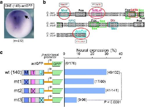 Comparative genomics-based identification and analysis of cis-regulatory elements. , Ogino H , Ochi H , Uchiyama C, Louie S, Grainger RM ., Methods Mol Biol. January 1, 2012; 917 245-63.