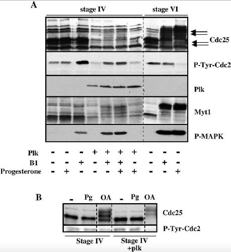 Phosphatase 2A and polo kinase, two antagonistic regulators of cdc25 activation and MPF auto-amplification. , Karaïskou A, Jessus C , Brassac T, Ozon R., J Cell Sci. November 1, 1999; 112 ( Pt 21) 3747-56.