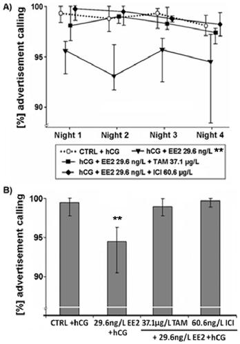 The antiestrogens tamoxifen and fulvestrant abolish estrogenic impacts of 17α-ethinylestradiol on male calling behavior of Xenopus laevis. , Hoffmann F, Kloas W ., PLoS One. January 1, 2012; 7 (9): e44715.
