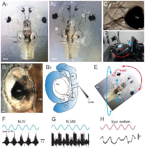 Locomotion-induced ocular motor behavior in larval Xenopus is developmentally tuned by visuo-vestibular reflexes. , Bacqué-Cazenave J, Courtand G, Beraneck M, Straka H , Combes D, Lambert FM ., Nat Commun. May 26, 2022; 13 (1): 2957.