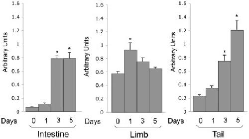 Expression profiling of intestinal tissues implicates tissue-specific genes and pathways essential for thyroid hormone-induced adult stem cell development. , Sun G , Heimeier RA, Fu L, Hasebe T , Das B, Ishizuya-Oka A , Shi YB ., Endocrinology. November 1, 2013; 154 (11): 4396-407.
