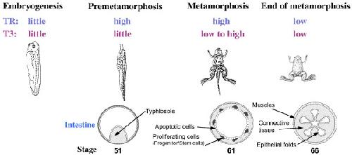 Molecular and genetic studies suggest that thyroid hormone receptor is both necessary and sufficient to mediate the developmental effects of thyroid hormone. , Das B, Matsuda H, Fujimoto K , Sun G , Matsuura K, Shi YB ., Gen Comp Endocrinol. September 1, 2010; 168 (2): 174-80.