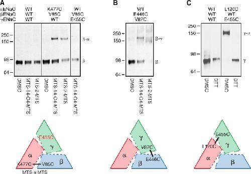 Intersubunit conformational changes mediate epithelial sodium channel gating. , Collier DM, Tomkovicz VR, Peterson ZJ, Benson CJ, Snyder PM ., J Gen Physiol. October 1, 2014; 144 (4): 337-48.
