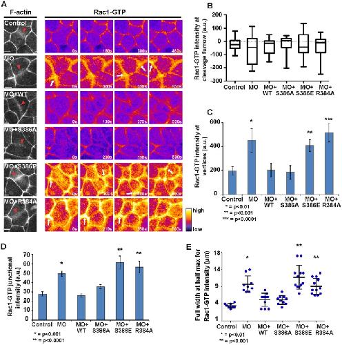 MgcRacGAP restricts active RhoA at the cytokinetic furrow and both RhoA and Rac1 at cell-cell junctions in epithelial cells. , Breznau EB, Semack AC, Higashi T, Miller AL ., Mol Biol Cell. July 1, 2015; 26 (13): 2439-55.
