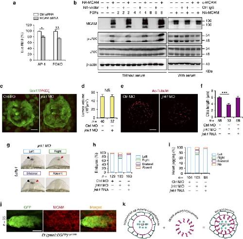 The signalling receptor MCAM coordinates apical-basal polarity and planar cell polarity during morphogenesis. , Gao Q, Zhang J, Wang X , Liu Y , He R , Liu X, Wang F, Feng J, Yang D, Wang Z, Meng A, Yan X., Nat Commun. June 7, 2017; 8 15279.