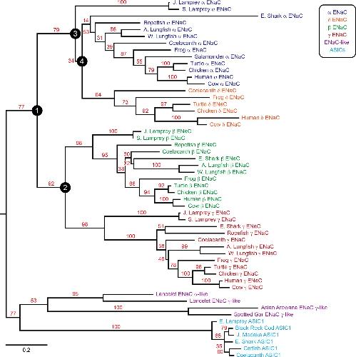 Activation by cleavage of the epithelial Na+ channel α and γ subunits independently coevolved with the vertebrate terrestrial migration. , Wang XP , Balchak DM, Gentilcore C, Clark NL, Kashlan OB., Elife. January 5, 2022; 11