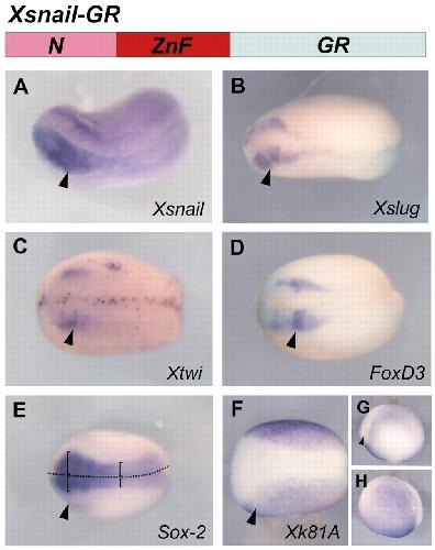 Snail precedes slug in the genetic cascade required for the specification and migration of the Xenopus neural crest. , Aybar MJ , Nieto MA, Mayor R ., Development. February 1, 2003; 130 (3): 483-94.