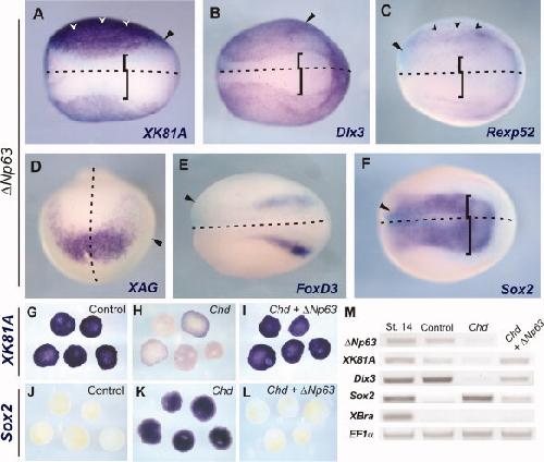 ΔNp63 is regulated by BMP4 signaling and is required for early epidermal development in Xenopus. , Tríbulo C , Guadalupe Barrionuevo M, Agüero TH, Sánchez SS, Calcaterra NB, Aybar MJ ., Dev Dyn. February 1, 2012; 241 (2): 257-69.
