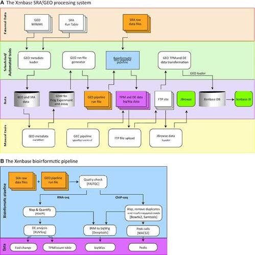 Xenbase: deep integration of GEO & SRA RNA-seq and ChIP-seq data in a model organism database., Fortriede JD, Pells TJ, Chu S, Chaturvedi P, Wang D, Fisher ME, James-Zorn C, Wang Y, Nenni MJ, Burns KA, Lotay VS, Ponferrada VG, Karimi K, Zorn AM, Vize PD., Nucleic Acids Res. January 8, 2020; 48 (D1): D776-D782. |