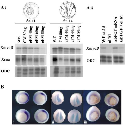eFGF is required for activation of XmyoD expression in the myogenic cell lineage of Xenopus laevis., Fisher ME, Isaacs HV, Pownall ME., Development. March 1, 2002; 129 (6): 1307-15. |