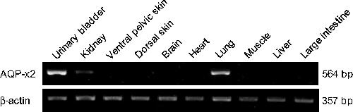 Immunocytochemical and phylogenetic distribution of aquaporins in the frog ventral skin and urinary bladder. , Tanaka S, Hasegawa T, Tanii H, Suzuki M ., Ann N Y Acad Sci. April 1, 2005; 1040 483-5.