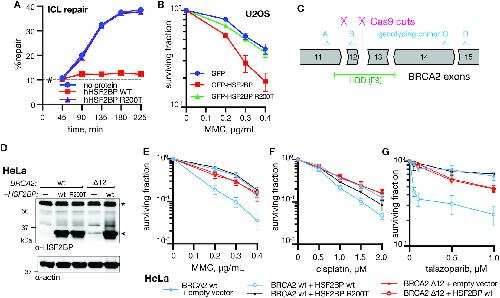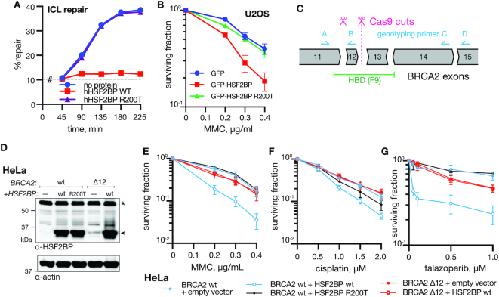 HSF2BP negatively regulates homologous recombination in DNA interstrand crosslink repair., Sato K, Brandsma I, van Rossum-Fikkert SE, Verkaik N, Oostra AB, Dorsman JC, van Gent DC, Knipscheer P, Kanaar R, Zelensky AN., Nucleic Acids Res. March 18, 2020; 48 (5): 2442-2456. |