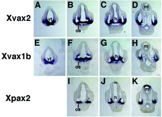 Expression of the Xvax2 gene demarcates presumptive ventral telencephalon and specific visual structures in Xenopus laevis. , Liu Y , Lupo G, Marchitiello A, Gestri G, He RQ , Banfi S, Barsacchi G., Mech Dev. January 1, 2001; 100 (1): 115-8.