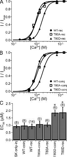 EF hands at the N-lobe of calmodulin are required for both SK channel gating and stable SK-calmodulin interaction. , Li W , Halling DB, Hall AW, Aldrich RW., J Gen Physiol. October 1, 2009; 134 (4): 281-93.