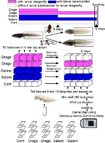Gene expression profiles in Rana pirica tadpoles following exposure to a predation threat. , Mori T , Yanagisawa Y, Kitani Y, Sugiyama M, Kishida O, Nishimura K., BMC Genomics. April 2, 2015; 16 258.