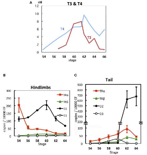 Regulation of thyroid hormone sensitivity by differential expression of the thyroid hormone receptor during Xenopus metamorphosis. , Nakajima K , Fujimoto K , Yaoita Y ., Genes Cells. August 1, 2012; 17 (8): 645-59.