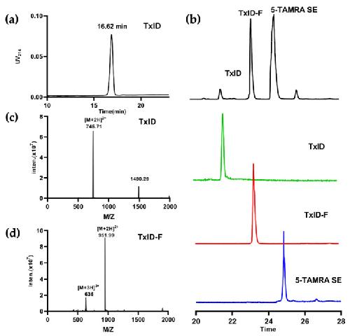 Fluorescently Labeled α-Conotoxin TxID, a New Probe for α3β4 Neuronal Nicotinic Acetylcholine Receptors. , Huang M, Zhu X, Yang Y , Tan Y, Luo S, Zhangsun D., Mar Drugs. August 12, 2022; 20 (8):
