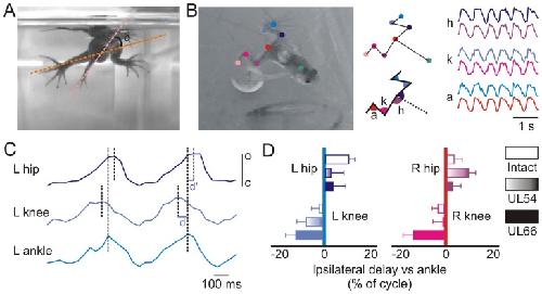 Metamorphosis-induced changes in the coupling of spinal thoraco-lumbar motor outputs during swimming in Xenopus laevis. , Beyeler A, Metais C, Combes D, Simmers J, Le Ray D ., J Neurophysiol. September 1, 2008; 100 (3): 1372-83.