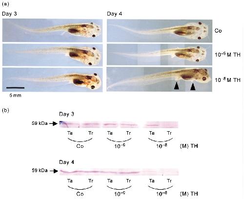 Ontogenic emergence and localization of larval skin antigen molecule recognized by adult T cells of Xenopus laevis: Regulation by thyroid hormone during metamorphosis. , Watanabe M, Ohshima M, Morohashi M, Maéno M, Izutsu Y ., Dev Growth Differ. February 1, 2003; 45 (1): 77-84.