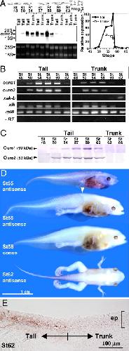 The keratin-related Ouroboros proteins function as immune antigens mediating tail regression in Xenopus metamorphosis. , Mukaigasa K, Hanasaki A, Maéno M, Fujii H, Hayashida S, Itoh M, Kobayashi M, Tochinai S, Hatta M, Iwabuchi K, Taira M , Onoé K, Izutsu Y ., Proc Natl Acad Sci U S A. October 27, 2009; 106 (43): 18309-14.