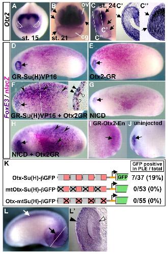 Convergence of a head-field selector Otx2 and Notch signaling: a mechanism for lens specification. , Ogino H , Fisher M , Grainger RM ., Development. January 1, 2008; 135 (2): 249-58.