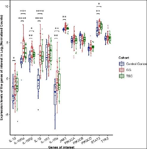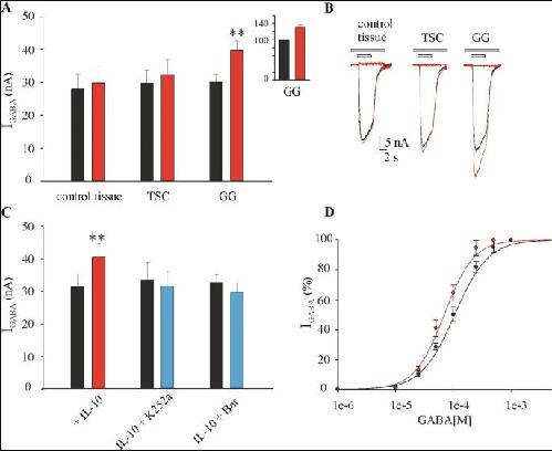 GABAA receptor function is enhanced by Interleukin-10 in human epileptogenic gangliogliomas and its effect is counteracted by Interleukin-1β., Ruffolo G, Alfano V, Romagnolo A, Zimmer T, Mills JD, Cifelli P, Gaeta A, Morano A, Anink J, Mühlebner A, Vezzani A, Aronica E, Palma E., Sci Rep. October 26, 2022; 12 (1): 17956. |