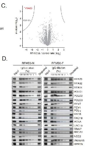 The ubiquitin ligase RFWD3 is required for translesion DNA synthesis., Gallina I, Hendriks IA, Hoffmann S, Larsen NB, Johansen J, Colding-Christensen CS, Schubert L, Sellés-Baiget S, Fábián Z, Kühbacher U, Gao AO, Räschle M, Rasmussen S, Nielsen ML, Mailand N, Duxin JP., Mol Cell. February 4, 2021; 81 (3): 442-458.e9. |