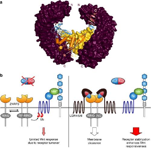 Structural and molecular basis of ZNRF3/RNF43 transmembrane ubiquitin ligase inhibition by the Wnt agonist R-spondin., Zebisch M, Xu Y, Krastev C, MacDonald BT, Chen M, Gilbert RJ, He X, Jones EY., Nat Commun. January 1, 2013; 4 2787. |