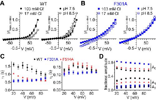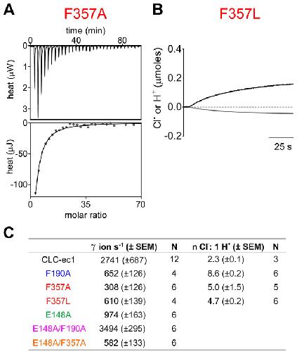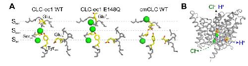 Divergent Cl- and H+ pathways underlie transport coupling and gating in CLC exchangers and channels., Leisle L, Xu Y, Fortea E, Lee S, Galpin JD, Vien M, Ahern CA, Accardi A, Bernèche S., Elife. April 28, 2020; 9 |