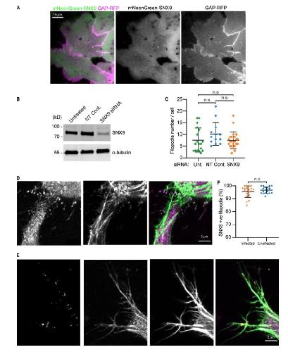 A direct role for SNX9 in the biogenesis of filopodia., Jarsch IK, Gadsby JR, Nuccitelli A, Mason J, Shimo H, Pilloux L, Marzook B, Mulvey CM, Dobramysl U, Bradshaw CR, Lilley KS, Hayward RD, Vaughan TJ, Dobson CL, Gallop JL., J Cell Biol. April 6, 2020; 219 (4): |