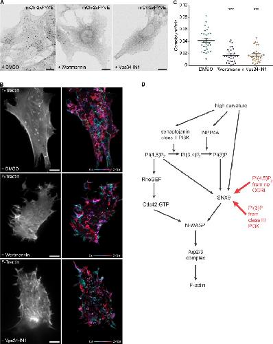Control of actin polymerization via the coincidence of phosphoinositides and high membrane curvature., Daste F, Walrant A, Holst MR, Gadsby JR, Mason J, Lee JE, Brook D, Mettlen M, Larsson E, Lee SF, Lundmark R, Gallop JL., J Cell Biol. November 6, 2017; 216 (11): 3745-3765. |