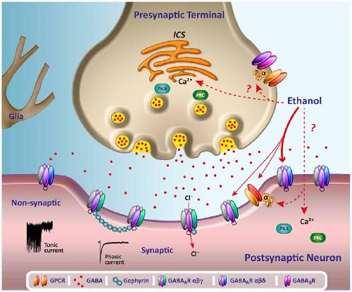 Potentiation of Gamma Aminobutyric Acid Receptors (GABAAR) by Ethanol: How Are Inhibitory Receptors Affected?, Förstera B, Castro PA, Moraga-Cid G, Aguayo LG., Front Cell Neurosci. May 6, 2016; 10 114. |