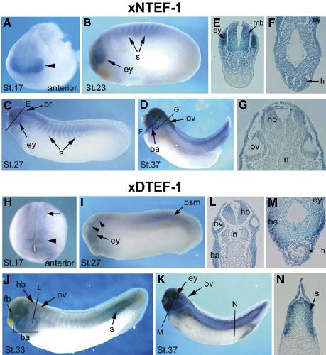 Differential expression of two TEF-1 (TEAD) genes during Xenopus laevis development and in response to inducing factors. , Naye F, Tréguer K, Soulet F, Faucheux C, Fédou S, Thézé N , Thiébaud P ., Int J Dev Biol. January 1, 2007; 51 (8): 745-52.