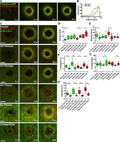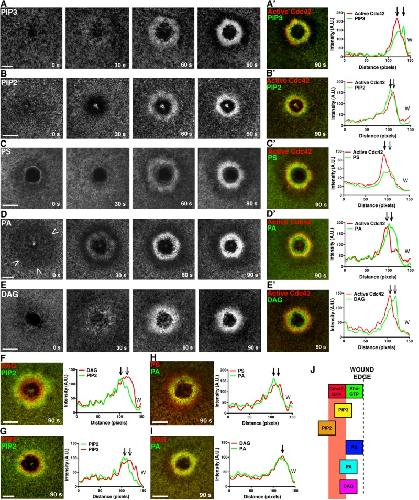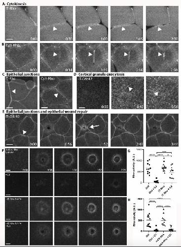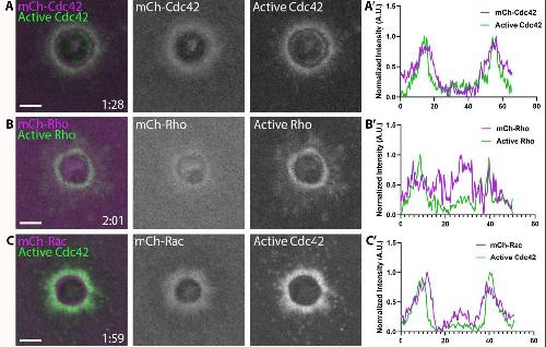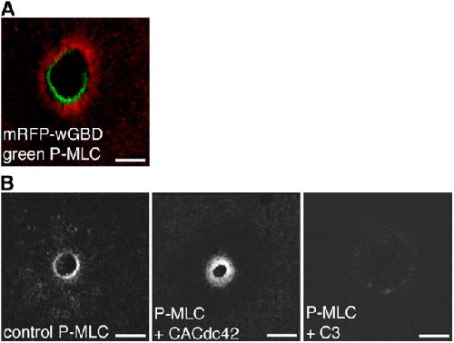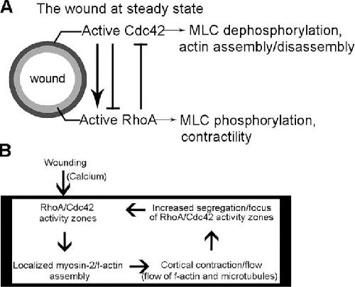 Concentric zones of active RhoA and Cdc42 around single cell wounds. , Benink HA, Bement WM ., J Cell Biol. January 31, 2005; 168 (3): 429-39.