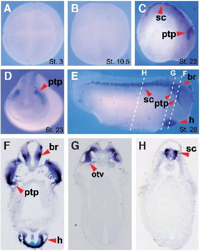 Developmental expression of the N-myc downstream regulated gene (Ndrg) family during Xenopus tropicalis embryogenesis., Zhong C, Zhou YK, Yang SS, Zhao JF, Zhu XL, Chen HH, Chen PC, Huang LQ, Huang X., Int J Dev Biol. January 1, 2015; 59 (10-12): 511-7. |
